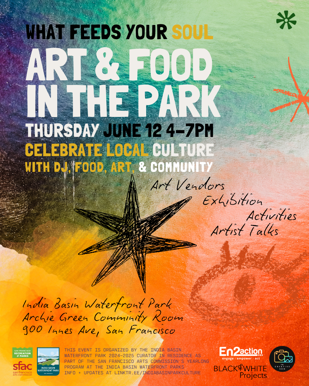 Join the India Basin Curator In Residence, project partners, and the San Francisco Arts Commission for Art and Food in the Park: What Feeds Your Soul. It will take place at the park (900 Innes Avenue) on Thursday, June 12 from 4 to 7 p.m. at Shipwright's Cottage in the Archie Green Community Room.