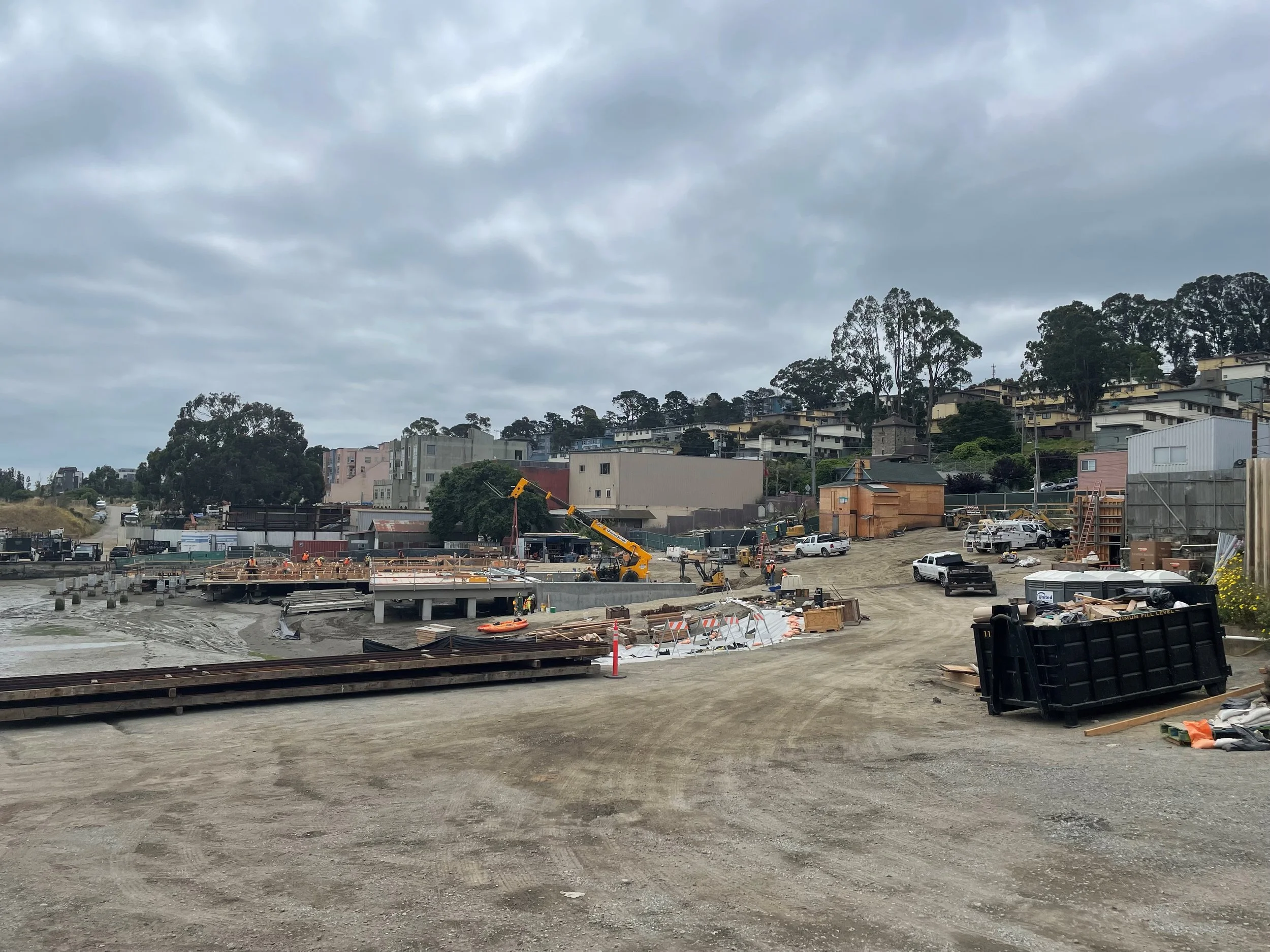 Walls are beginning to go up at India Basin Waterfront Park, with e thfood pavilion taking shape (pictured above) and the shop building up next. Additionally, we're forming concrete and installing rebar on Pier 2, with electrical installation and the placement of concrete slabs coming up.