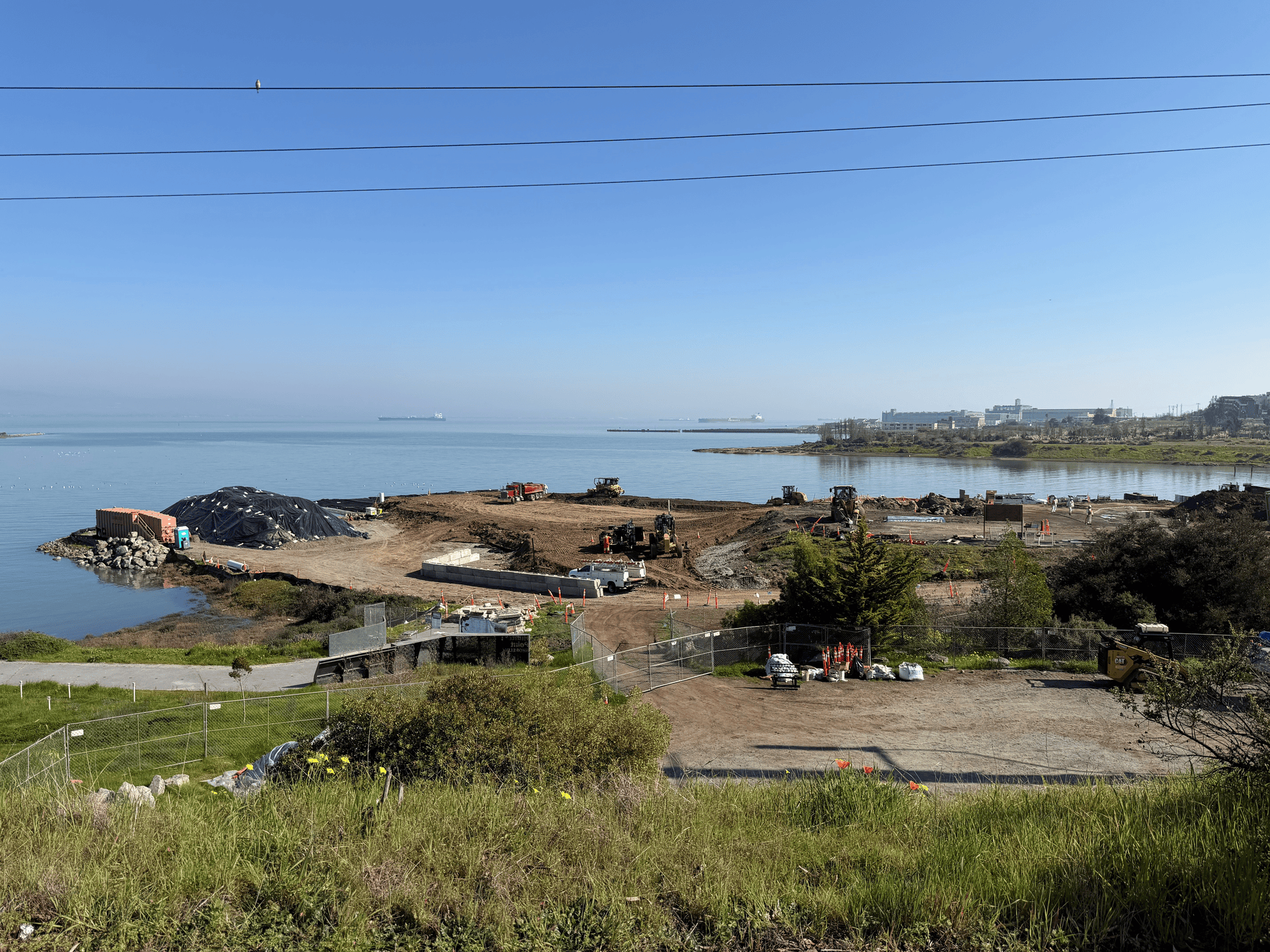 Ground stabilization work continues at India Basin Shoreline Park, with soil placement now complete in the Marine Way area and ongoing at the future playground site. After winter delays, PG&E pit work remains on track for completion in late February.